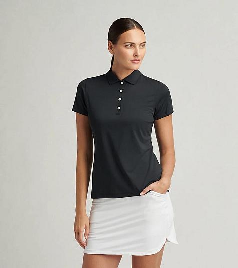 Peter Millar Women's Short Sleeve Button Golf Shirts are constructed with 92% Polyester, 8% Spandex, self collar, and a four-button placket.