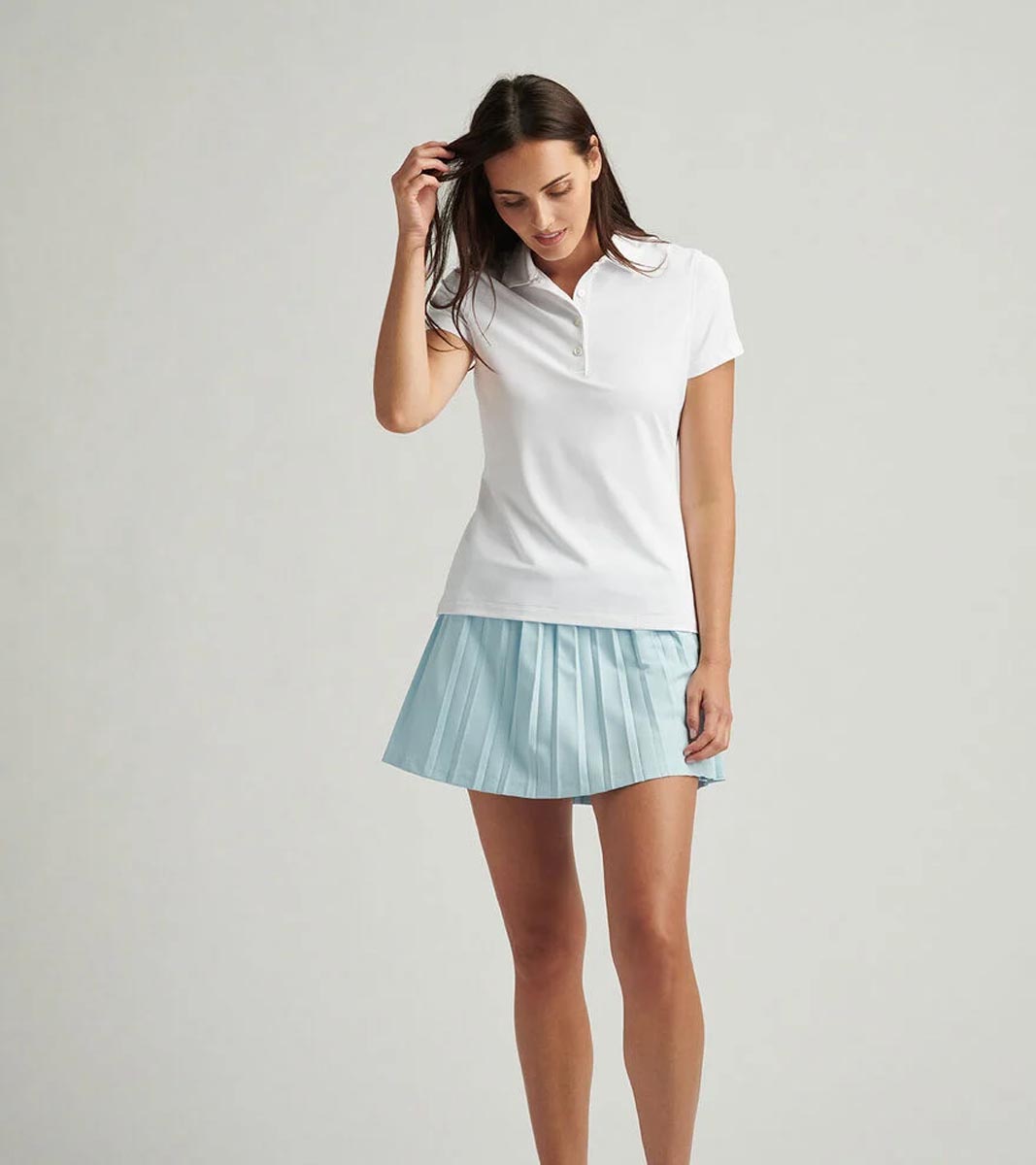 These Peter Millar women's golf shirts feature lightweight, breathable, quick-drying fabric that provides advanced moisture-wicking properties to conduct heat and sweat away from the body.