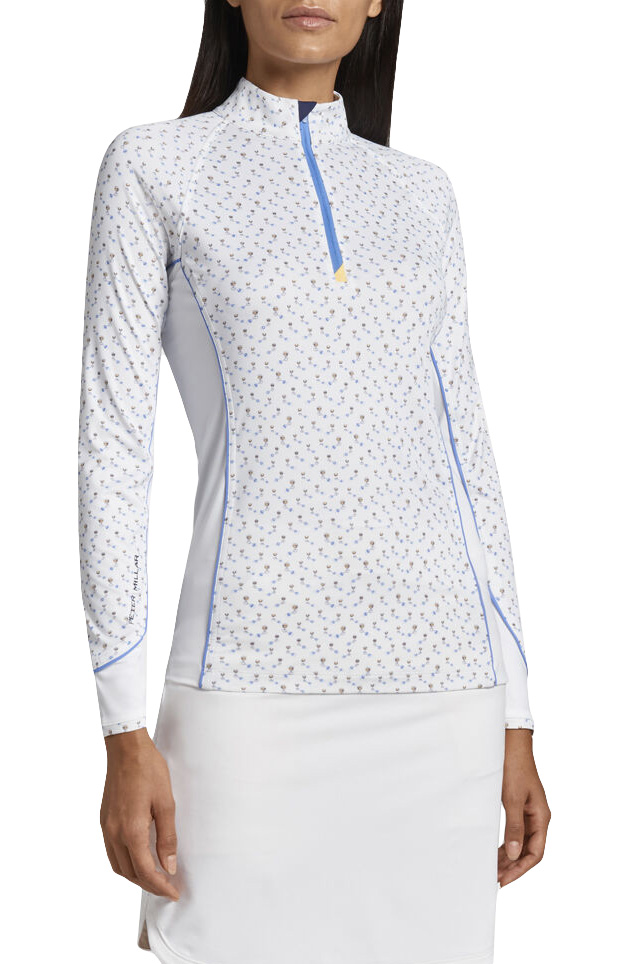 Peter Millar Women's Lightweight Sun Pop Clink Comfort Golf Base Layers - HOLIDAY SPECIAL - White with cocktail print and blue accents