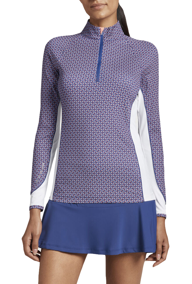 Peter Millar Women's Lightweight Sun Retro Floral Comfort Golf Base Layers - ON SALE - Retro Floral with sport navy and white accents