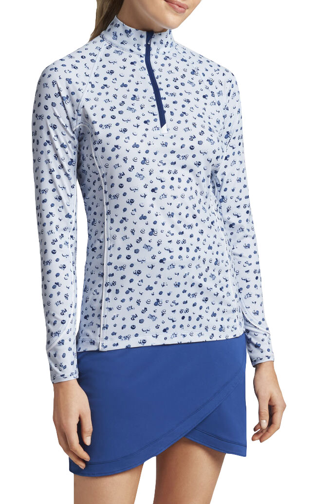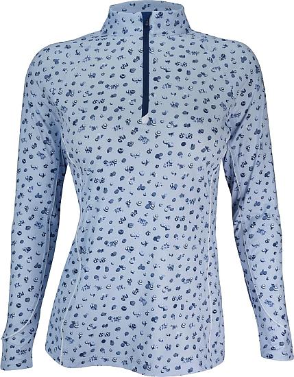 Peter Millar Women's Lightweight Sun Serenity Beach Comfort Golf Base Layers - Previous Season Style - ON SALE - Serenity beach blue with allover beach print