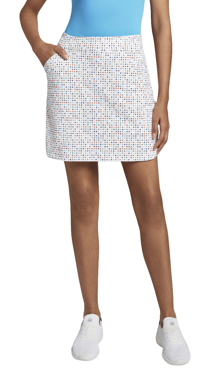 Peter Millar Women's Performance Alice Petal Hem Mid Century Golf Skorts - ON SALE - Mid century white with multi color dot print
