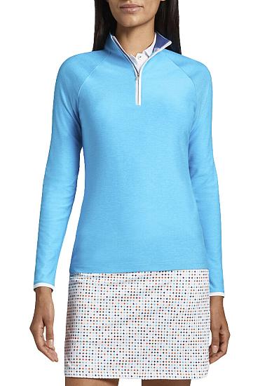 These Peter Millar women's golf pullovers are finished with a mock collar and a quarter-zip closure with contrast piping.