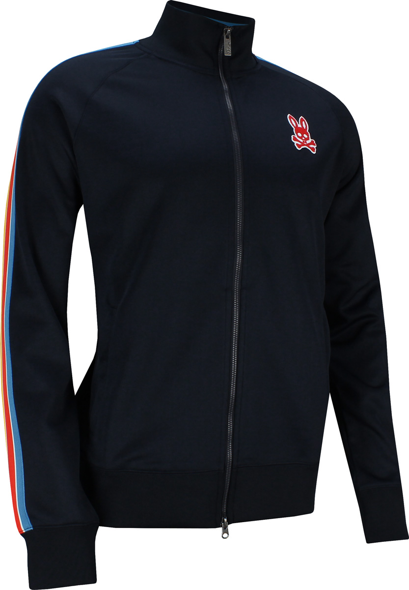 Psycho Bunny Alston Stitched Logo Full-Zip Golf Jackets - ON SALE - Navy with blue, yellow and red accents