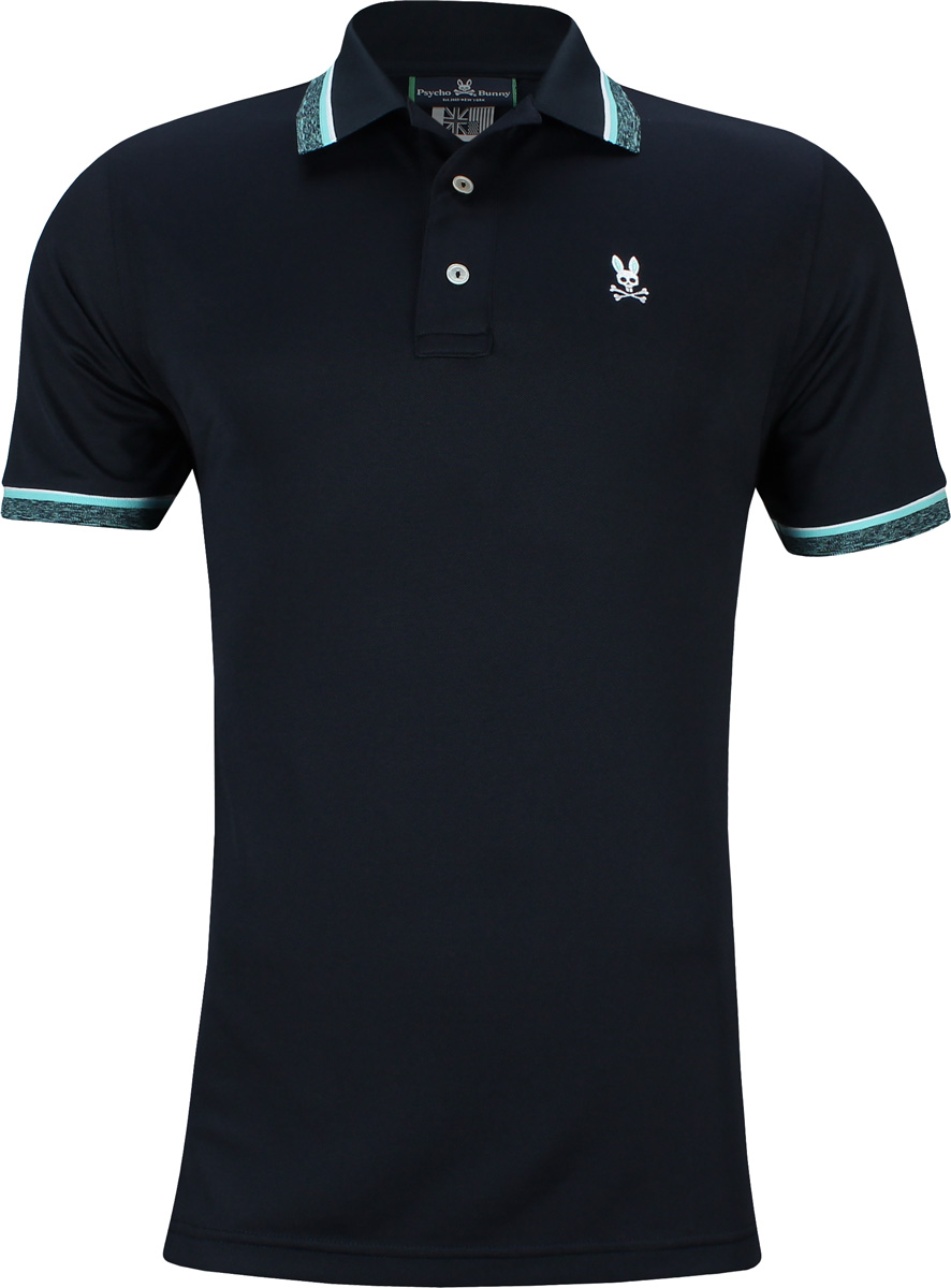 Psycho Bunny Taft Sport Pique Golf Shirts - Navy with heather blue and light blue accents