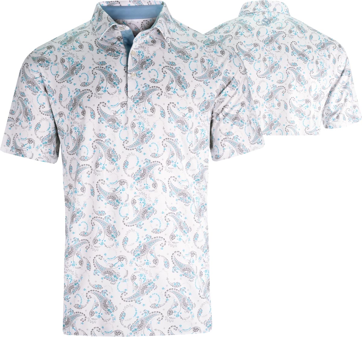 Puma Cloudspun Paisley Golf Shirts are constructed with 94% Polyester, 6% Elastane, a 3-button placket, paisley design, and a self collar.