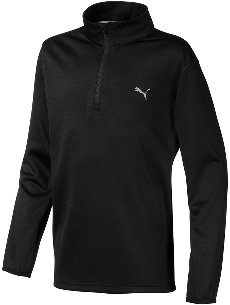 Puma Junior Quarter-Zip Golf Pullovers feature moisture wicking technology and a quarter-zip construction for easy on and off as conditions change out on the golf course.