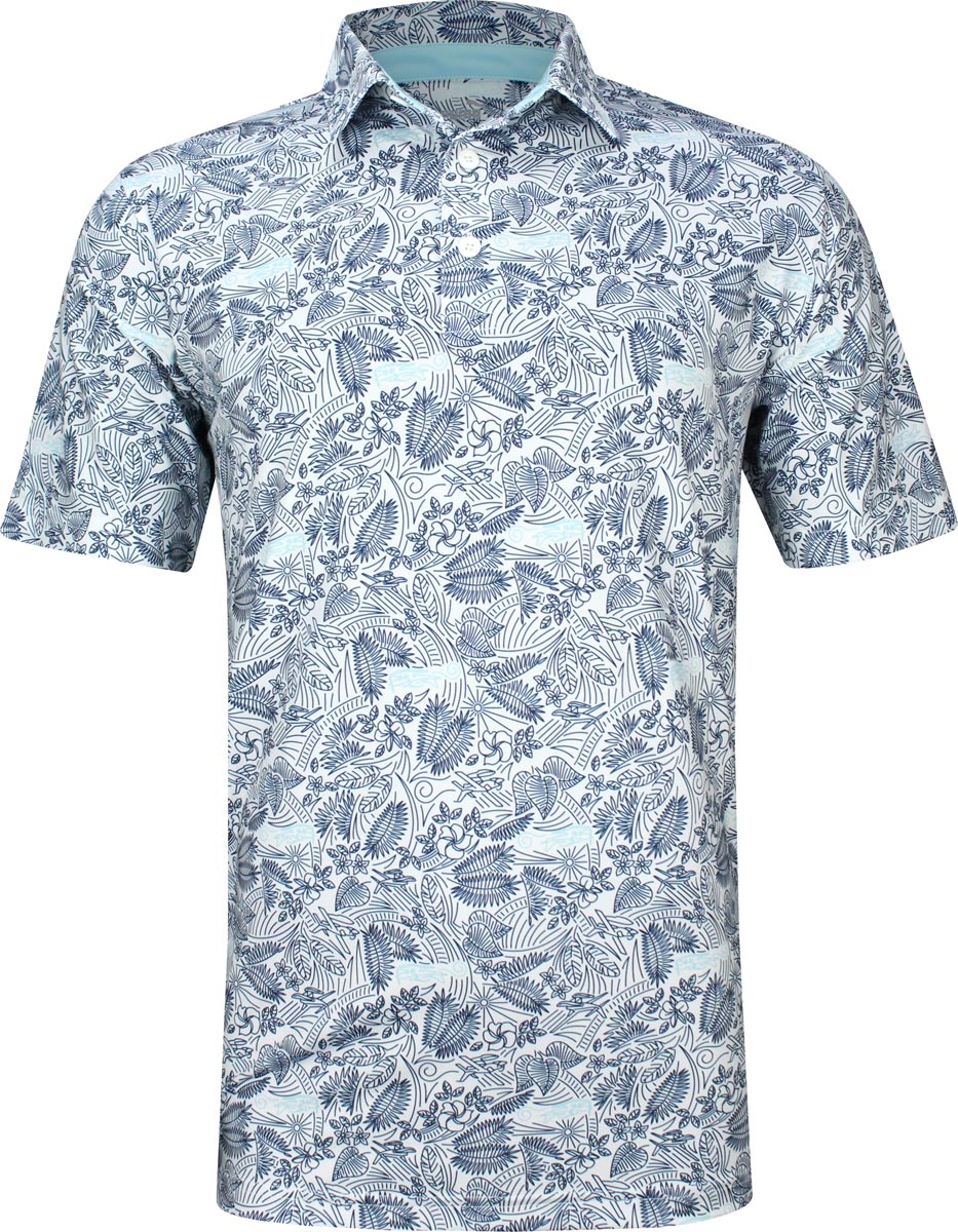 Puma MATTR Seaplanes Golf Shirts are constructed with 92% Polyester, 8% Elastane, three-button placket, and a floral design with novelty aviation print.