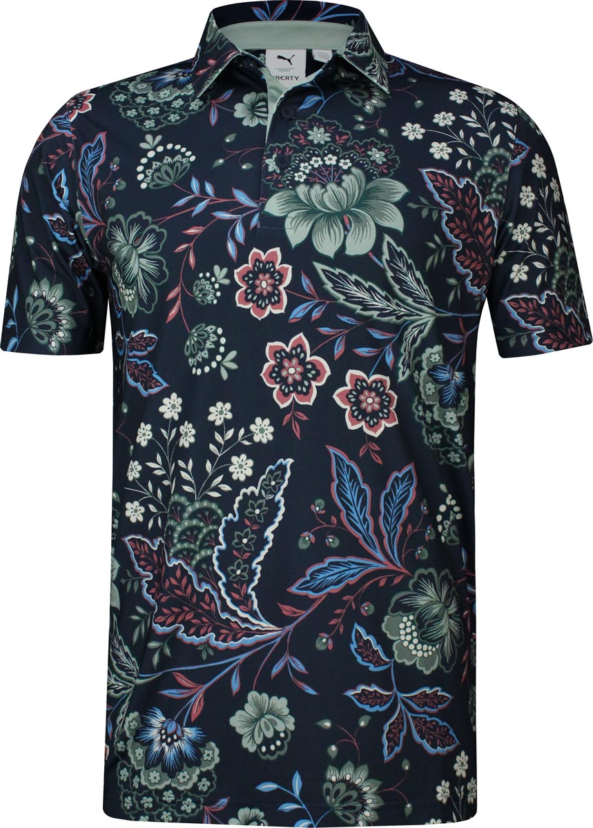 Puma x Liberty Paisley Golf Shirts feature trendy, high-end design with a bold floral print, and signature performance fabric that follows your every swing.