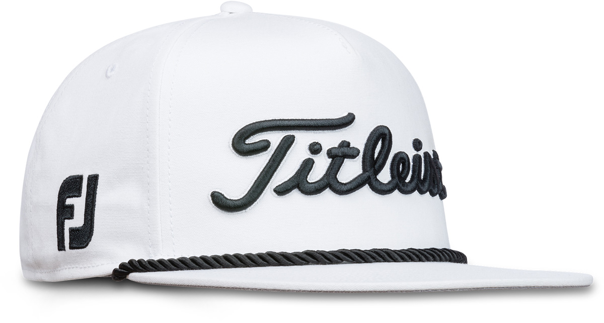 Titleist Tour Rope Flat Bill Snapback Adjustable Golf Hats feature a trendy flat bill design and an old school rope style that is inspired by the game's history.