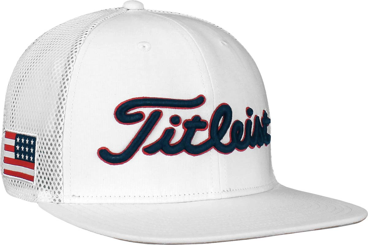 Specs for Titleist USA Flag Tour Flat Bill Snapback Mesh Adjustable Golf Hats