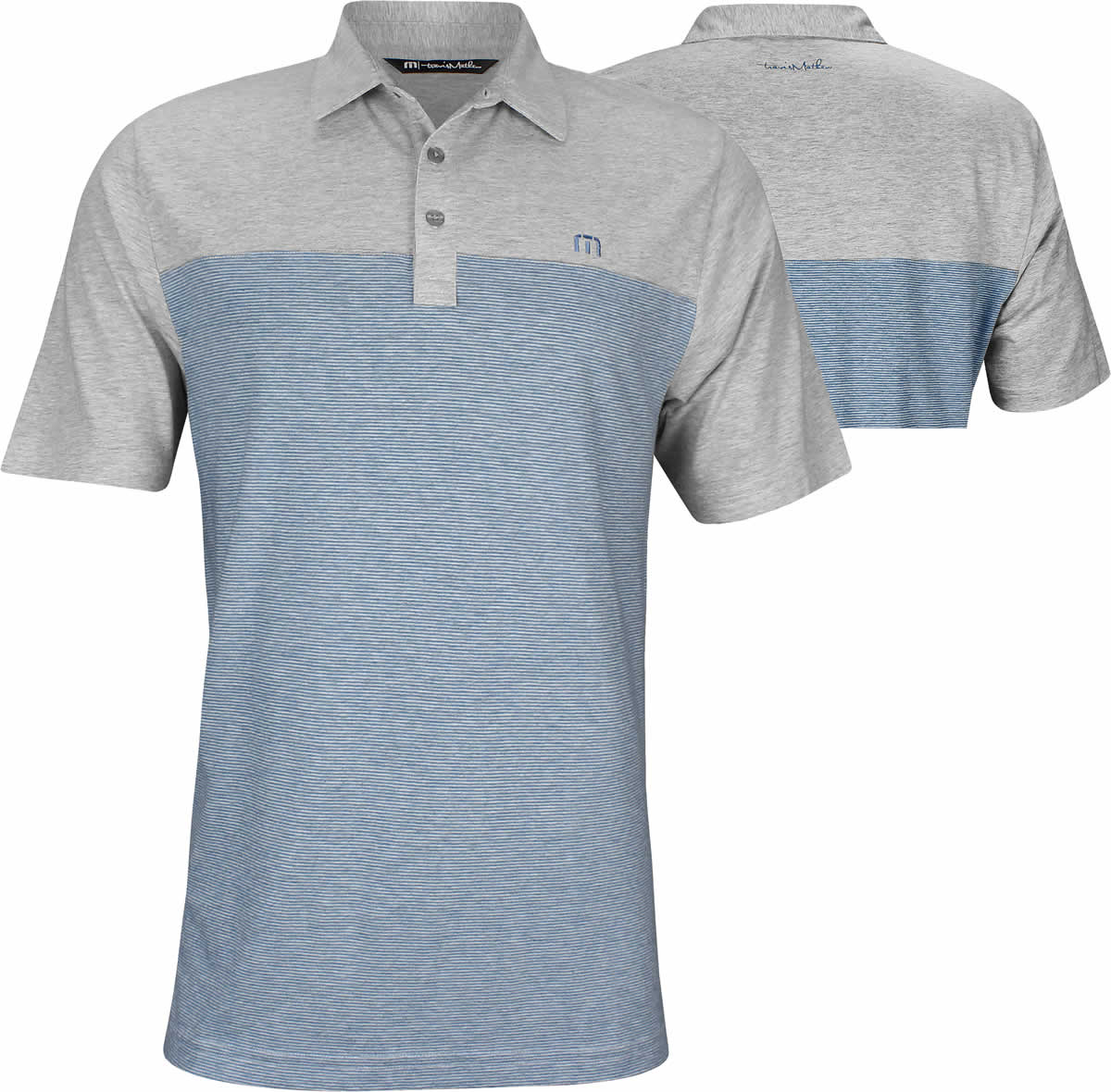 TravisMathew Pisco Sour Golf Shirts - ON SALE - Heather light grey with light blue colorblock