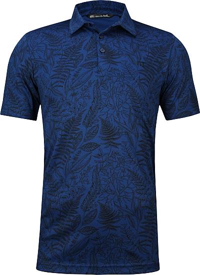 TravisMathew Bearville Golf Shirts are constructed with 58% Pima Cotton, 42% Polyester, three-button placket, and leafy print.
