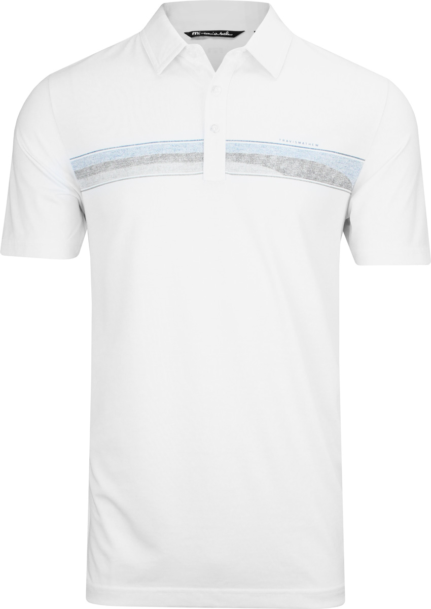 TravisMathew Floating Hotel Golf Shirts - ON SALE - White with light blue and grey chest stripe
