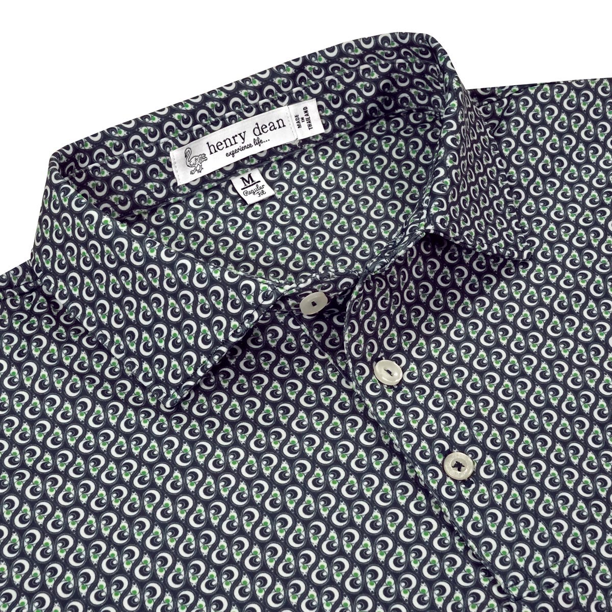 henry dean Paisley Cup Print Performance Knit Golf Shirts feature a fresh design for special rounds and occasions.