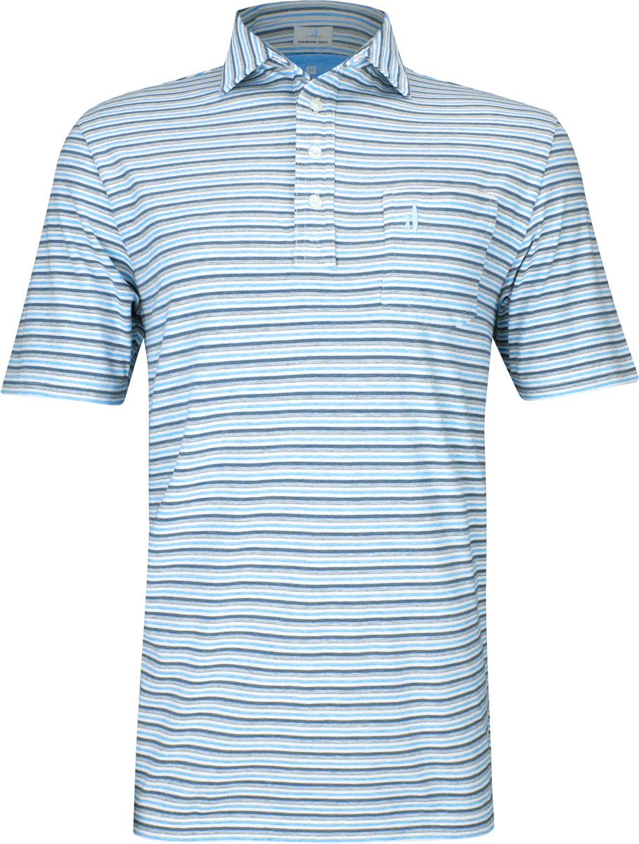 johnnie-O Grady Golf Shirts are constructed with 95% Cotton, 5% Spandex, four-button placket, left chest pocket, and multicolor stripe print.