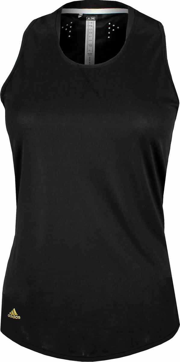 - Gold Metallic Adidas Performance Logo - on lower-right hem.